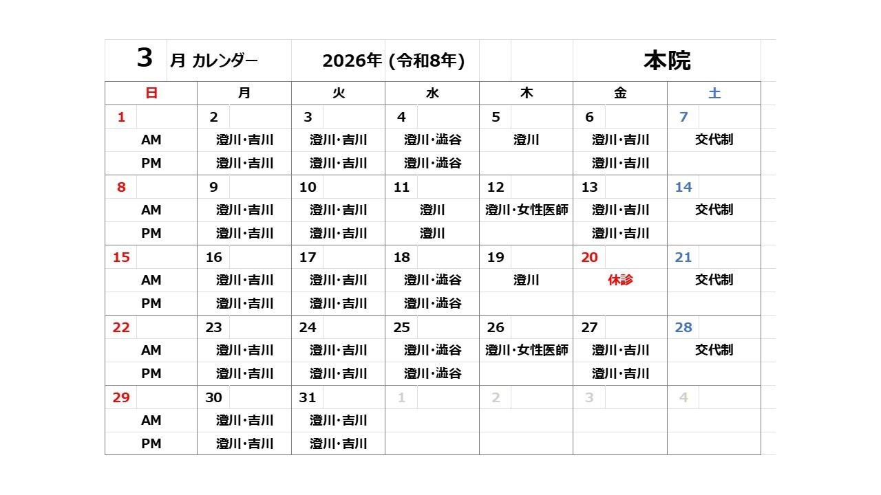| 午前 | ○ | ○ | ○ | ○ | ○ | ○ | × |